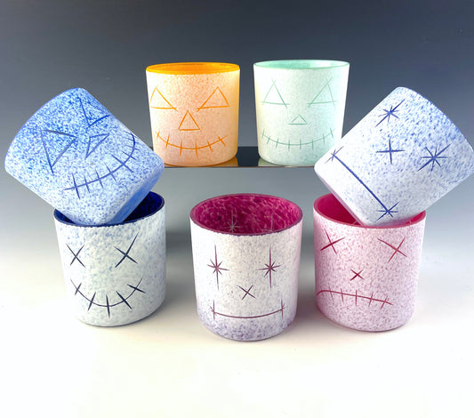 Carved Old Fashioned glass - Purple & Blue Shooting Stars